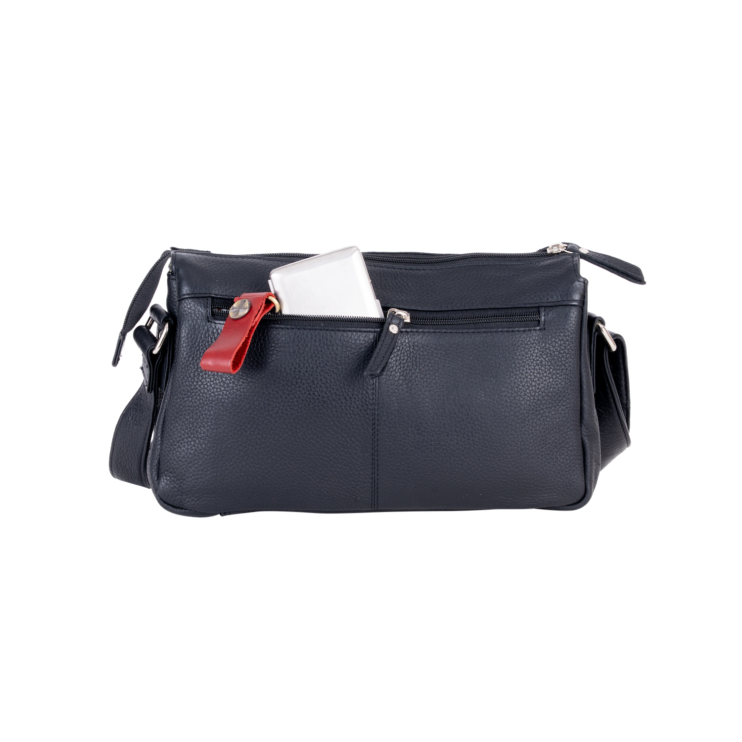Adjustable Shoulder Strap: The comfortable, adjustable leather strap allows for hands-free wear and custom fit, ideal for crossbody or shoulder carry.