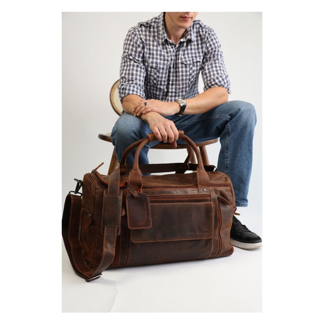 The natural leather gives the Greenwood travel bag a particularly interesting used look. The very comfortable strap on the bag make the bag look really cool on the wearer. The shoulder strap can be removed as desired, but the integrated padding means that somewhat heavy contents can also be carried easily and comfortably. You can also find suitable matching leather toiletry bag in our shop.