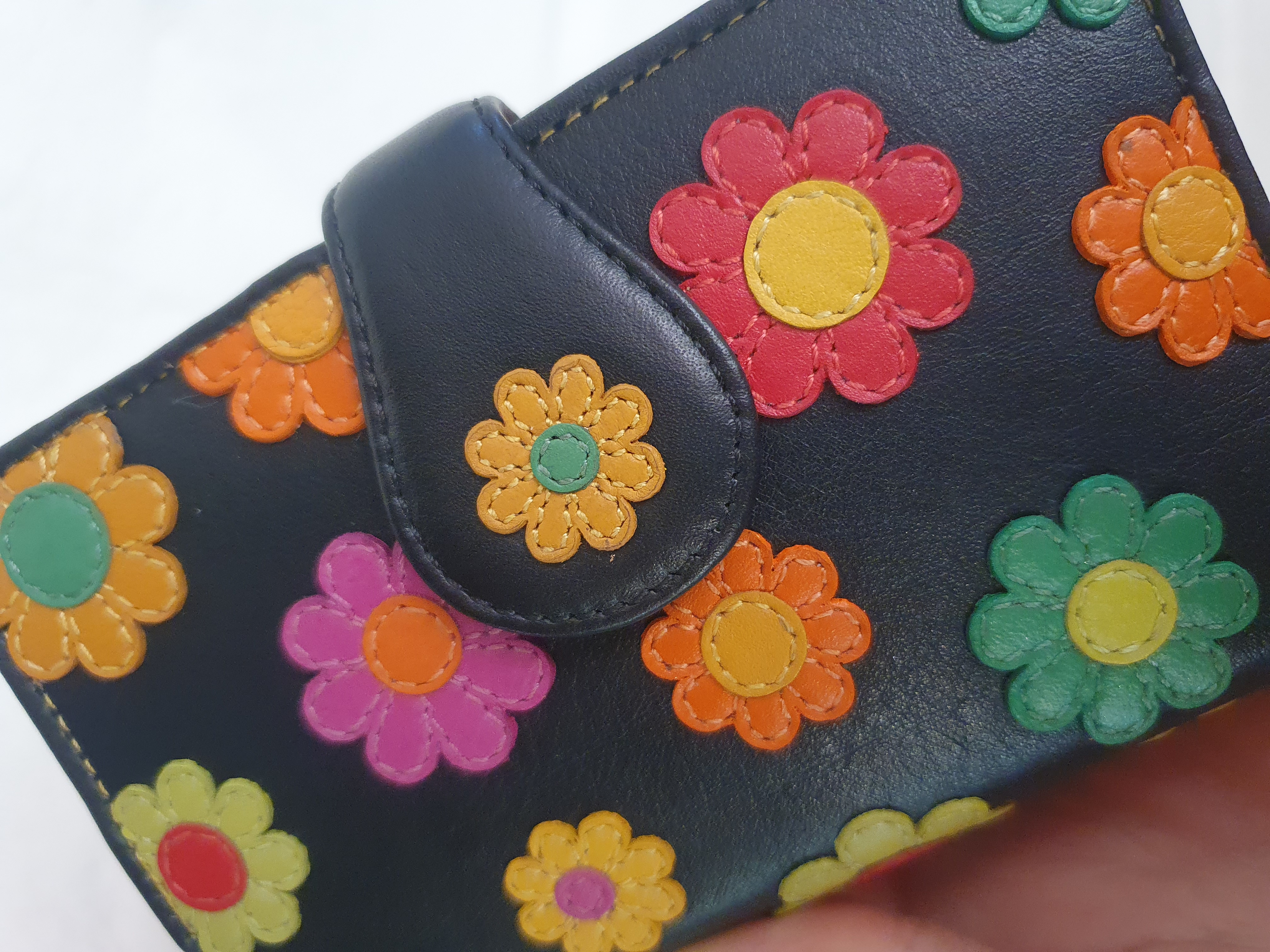 The Flower wallet was inspired by the natural beauty surrounding us, and we felt the only way to truly represent this was to use advanced techniques such as applique work. The soft black leather acts as a black canvas onto which this wonderful mix of brightly coloured flowers is individually stitched.